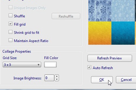 To insert an image as a background, go to the Backgrounds panel on the left and click on Backgrounds. This will open the familiar Windows browse dialog which has two main parts: Favorite Links or Folders on the left, and the file listings on the right. Browse using the panel on the left or the Look In location at the top, to the folder that contains the image you would like to use. Select it and hit OK.