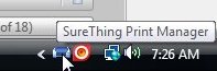 At the bottom-right hand corner of your screen you will see an icon for the SureThing Print Manager when printing. Open this to view your progress.
